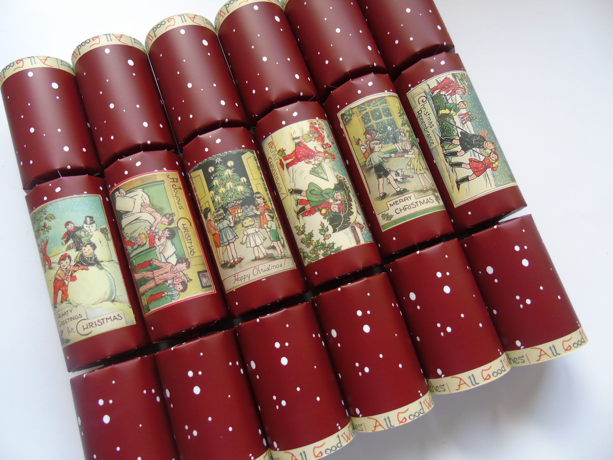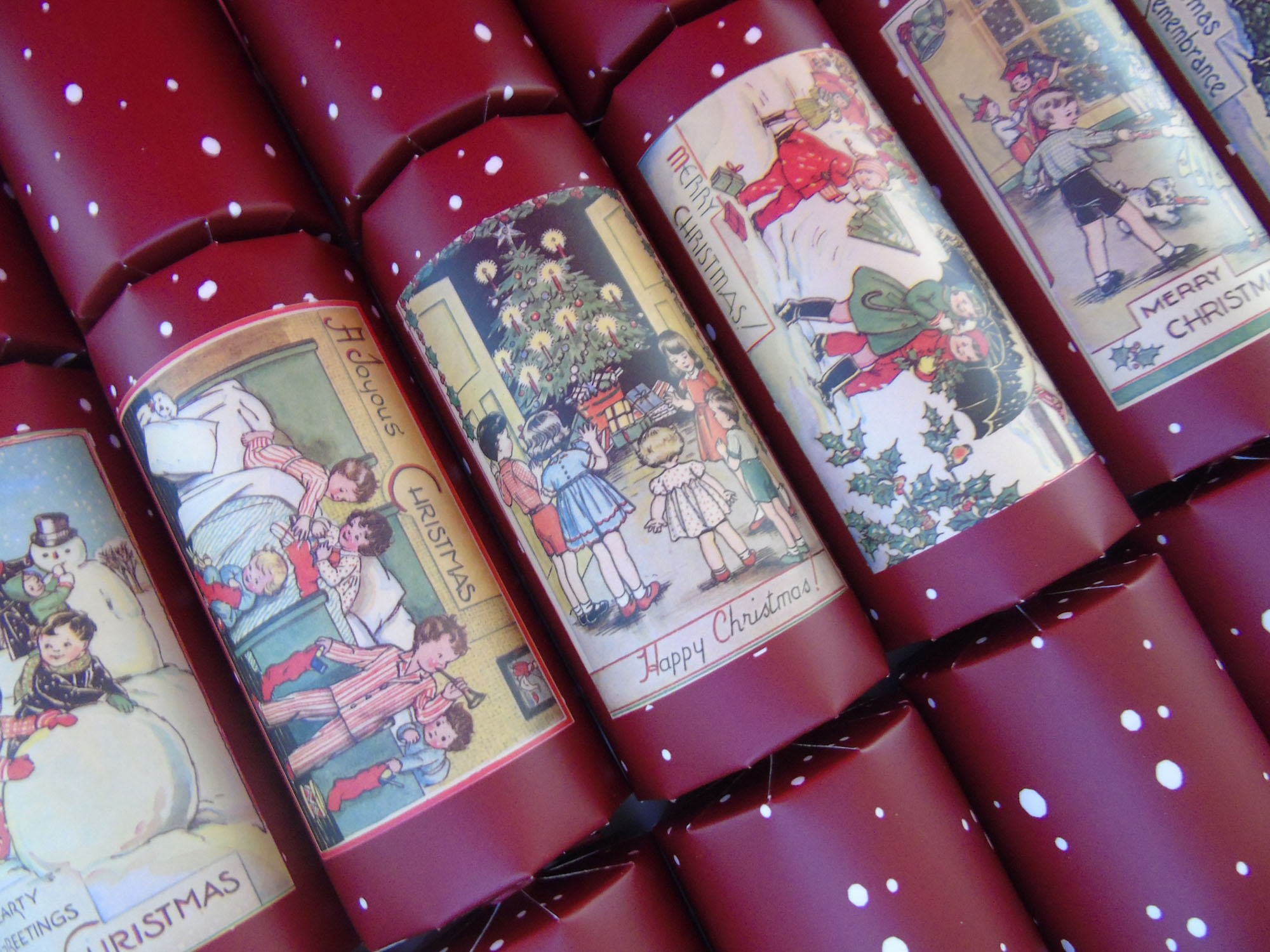 Using 1930’s Christmas postcards, these wonderfully nostalgic crackers have masses of charm.